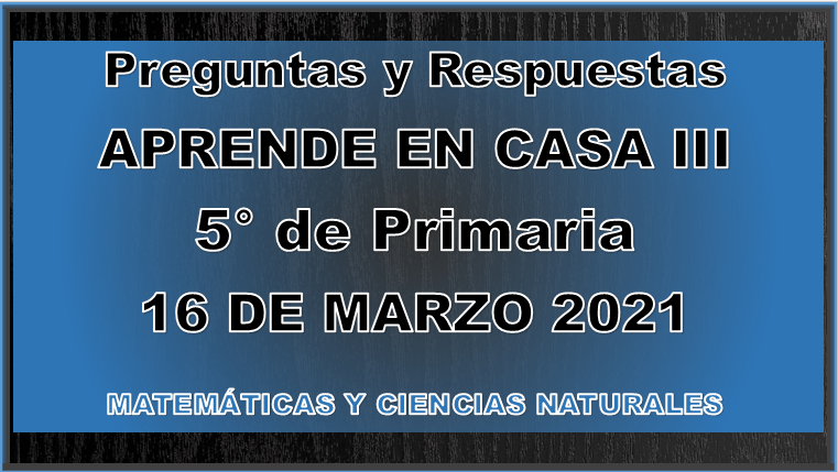 Preguntas y Respuestas Aprende en Casa 5° Primaria 16 de Marzo (MATEMÁTICAS Y CIENCIAS NATURALES)