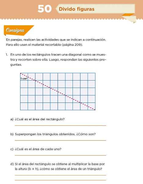 Con lo aprendido en nuestra clase vamos a resolver el desafío número 50 “Divido figuras” que se encuentra en la página 95 de tu libro de desafíos matemáticos y dice así: